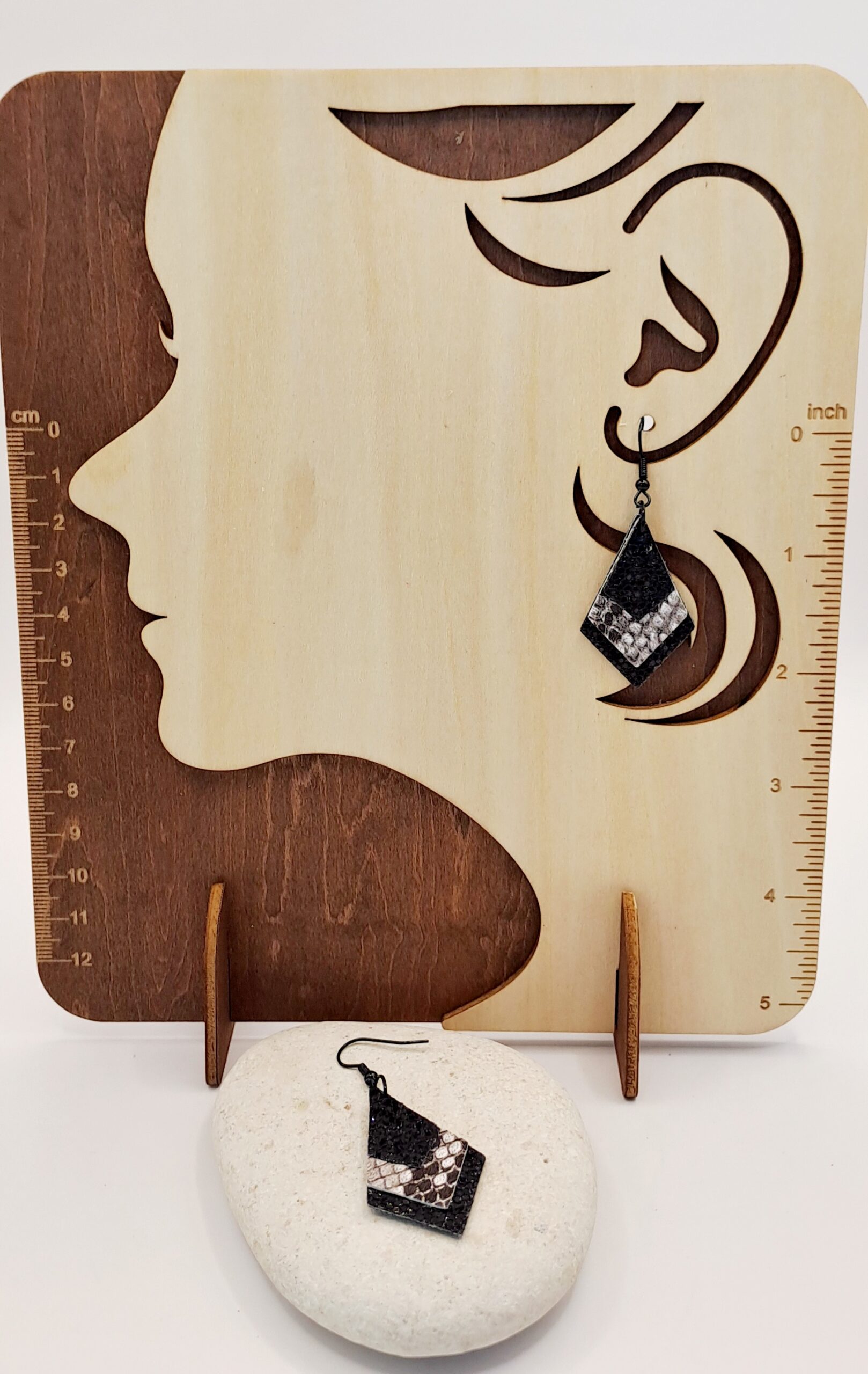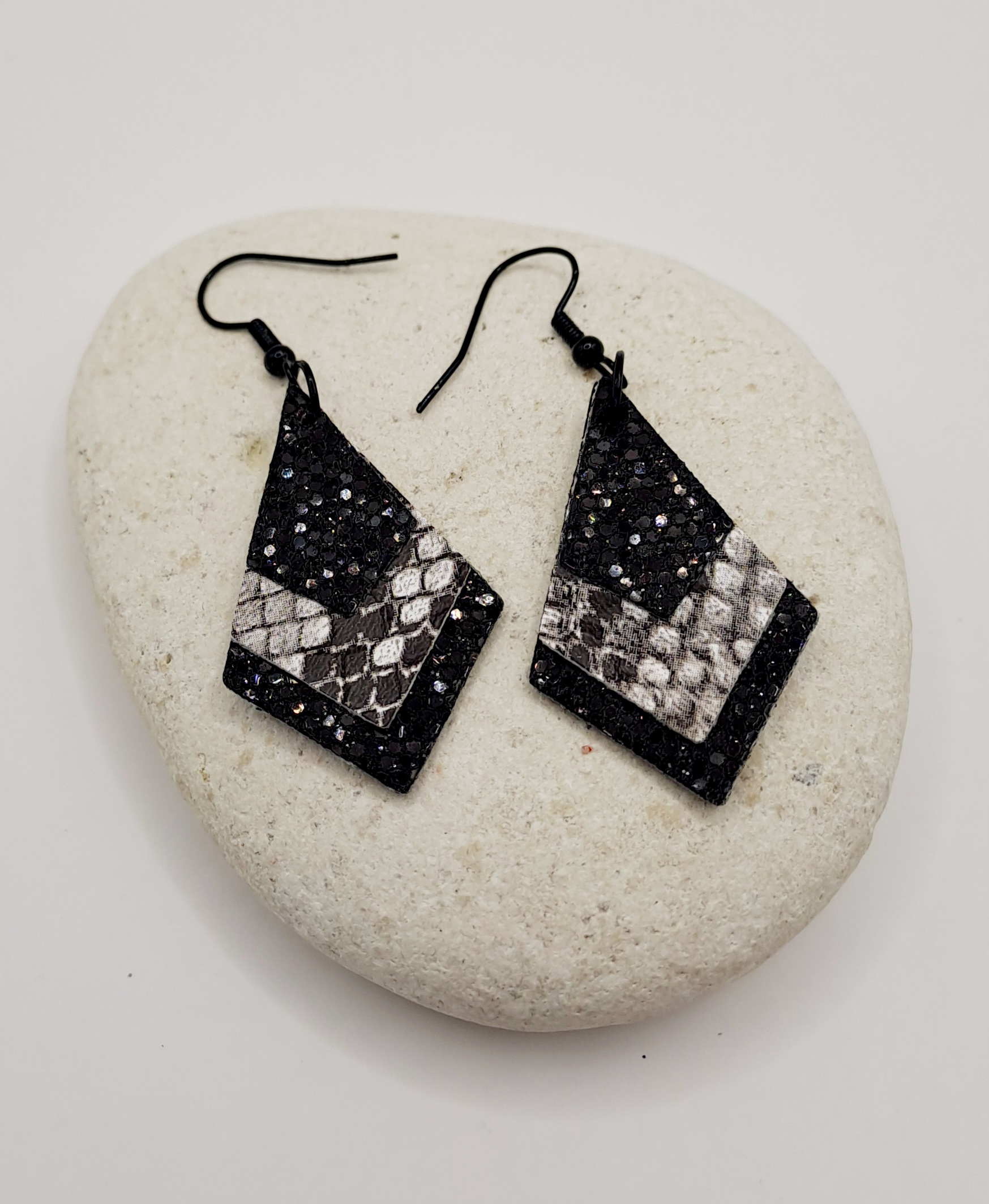 Boucles d’oreilles simili cuir et imprimé / crochet noir