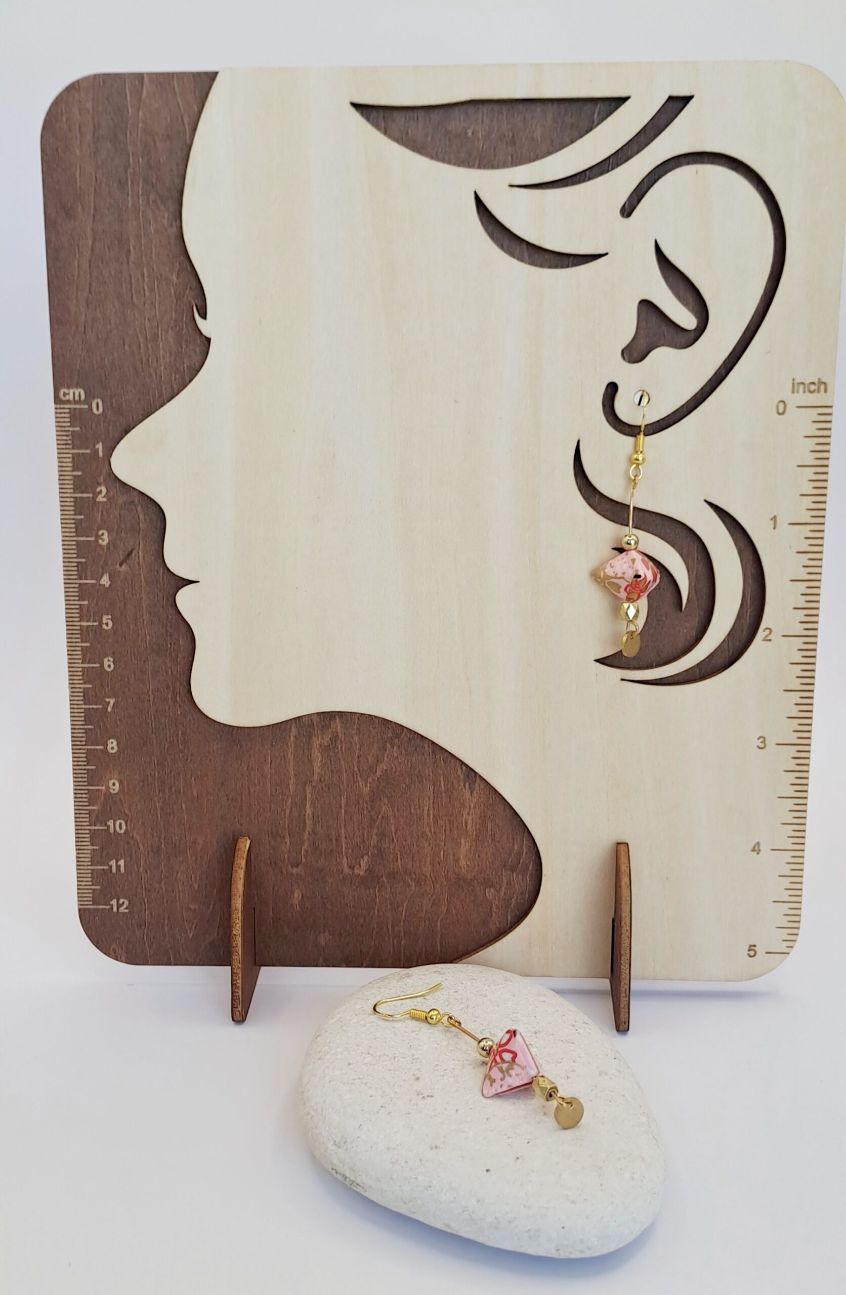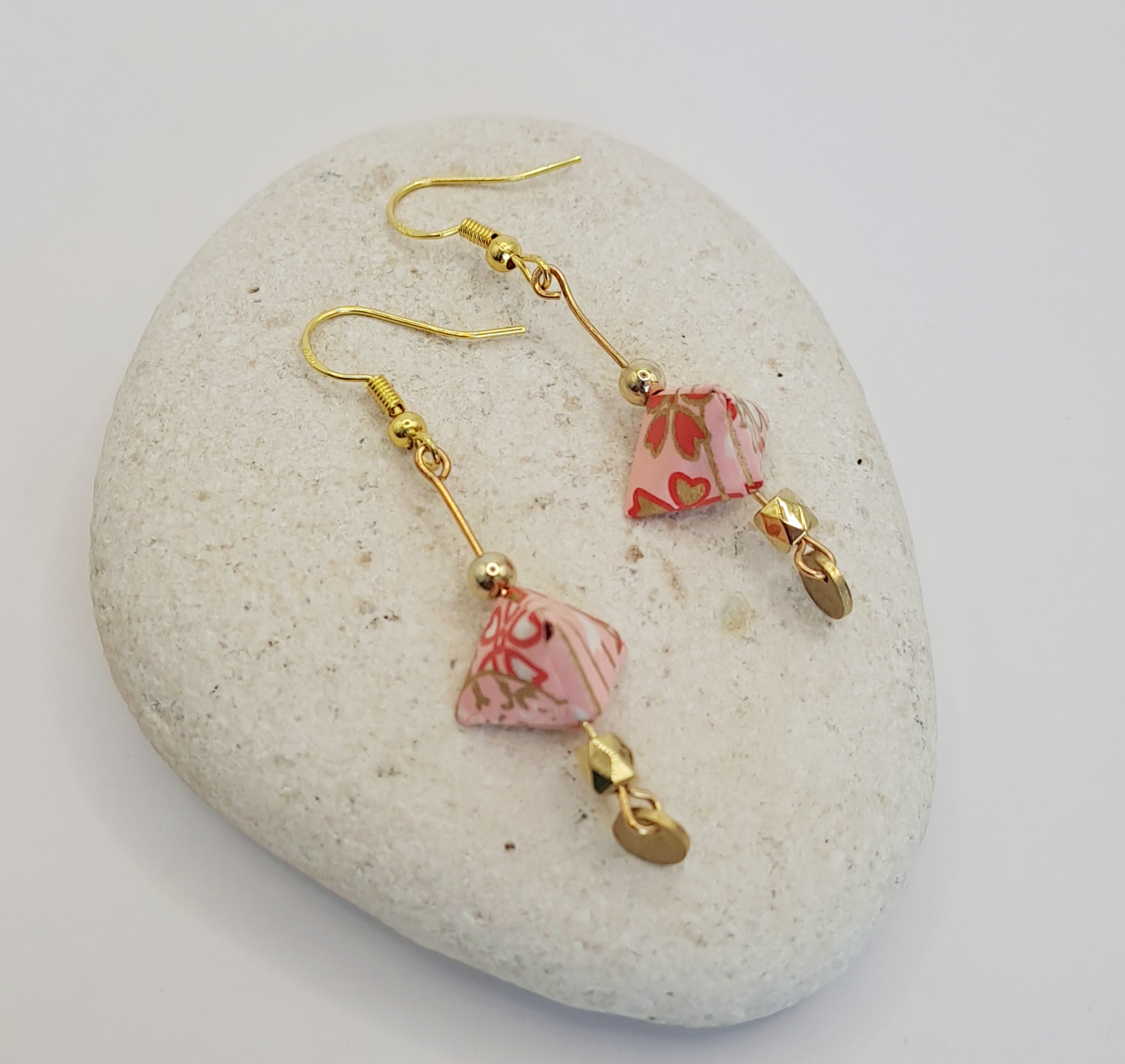 Boucles d’oreilles papier origami imprimé / perle doré / charme doré / crochet or