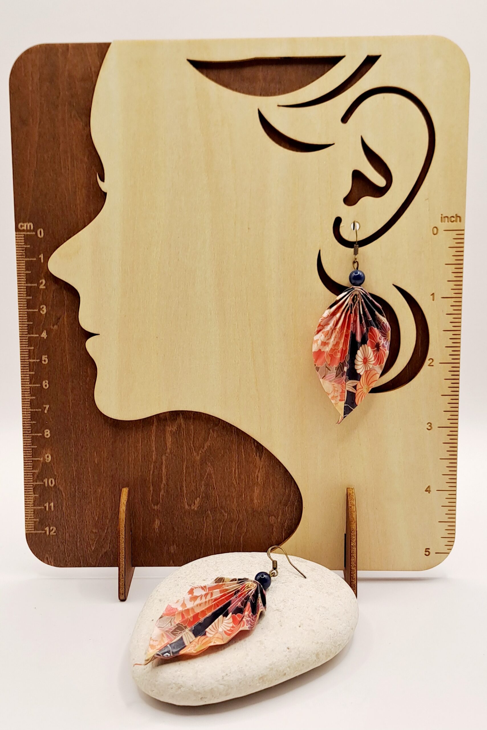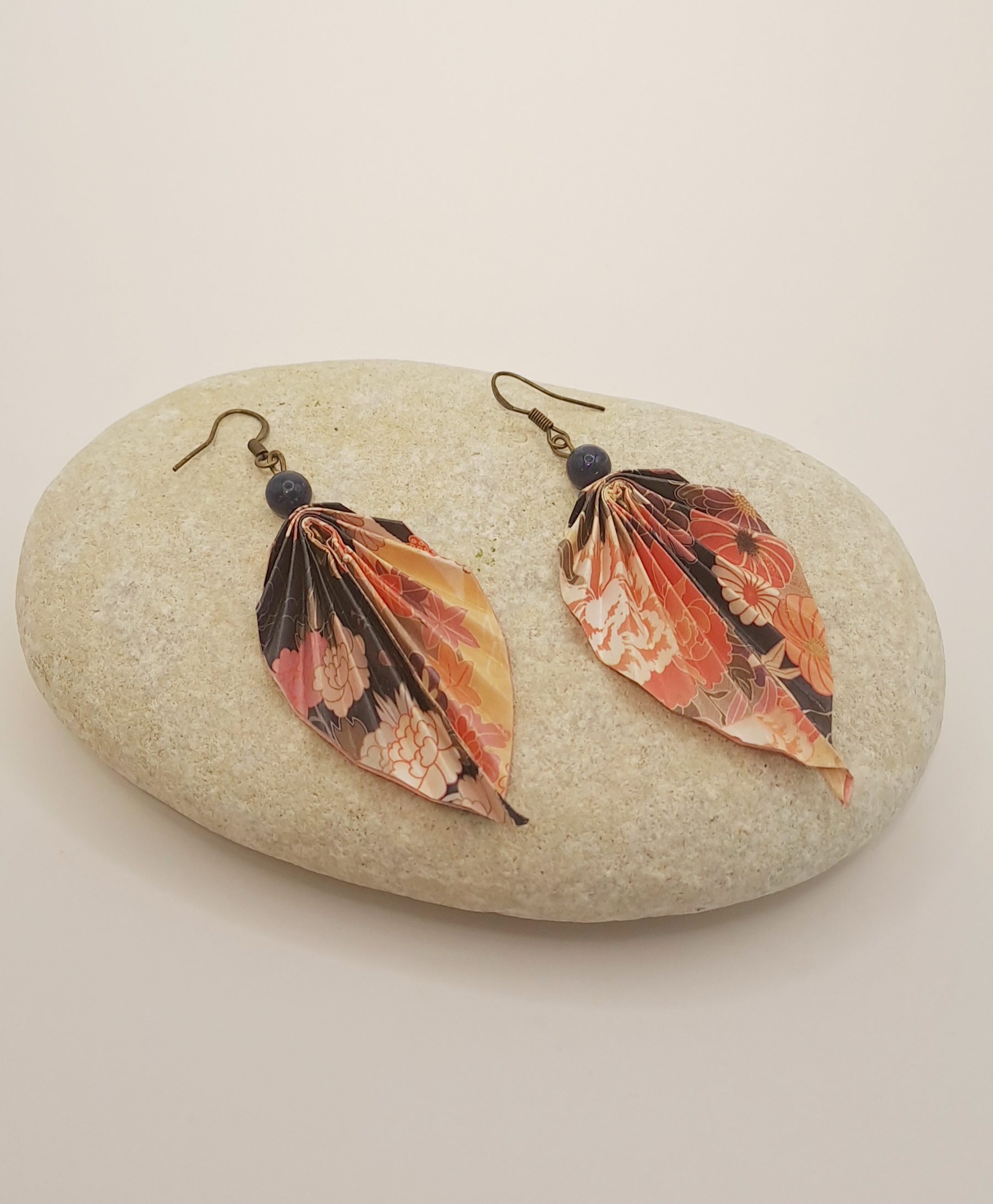 Boucles d’oreilles papier imprimé en dur / perle noir