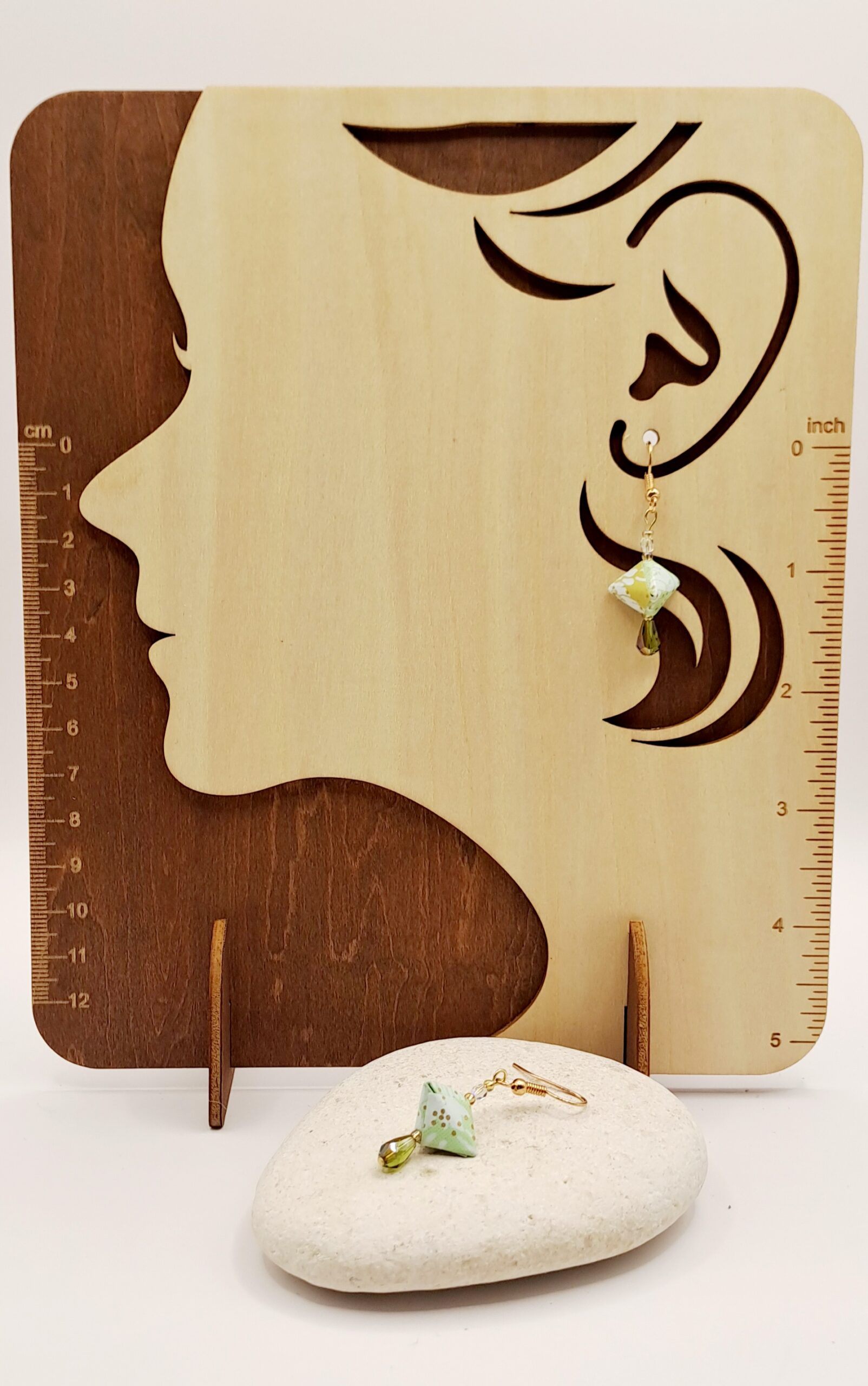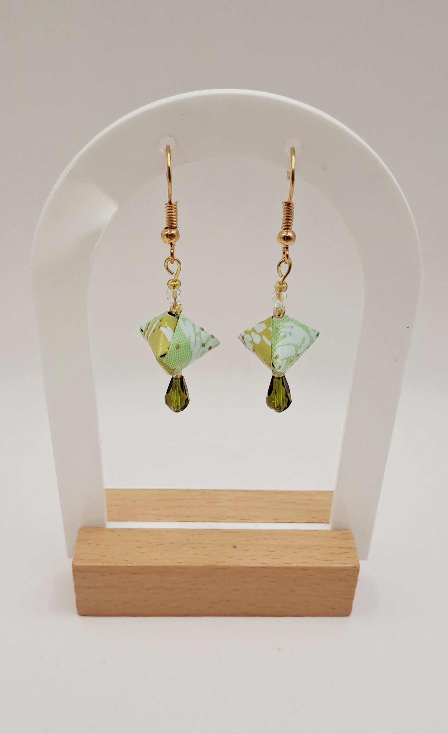 Boucles d’oreilles papier imprimé dur /perles / crochet or