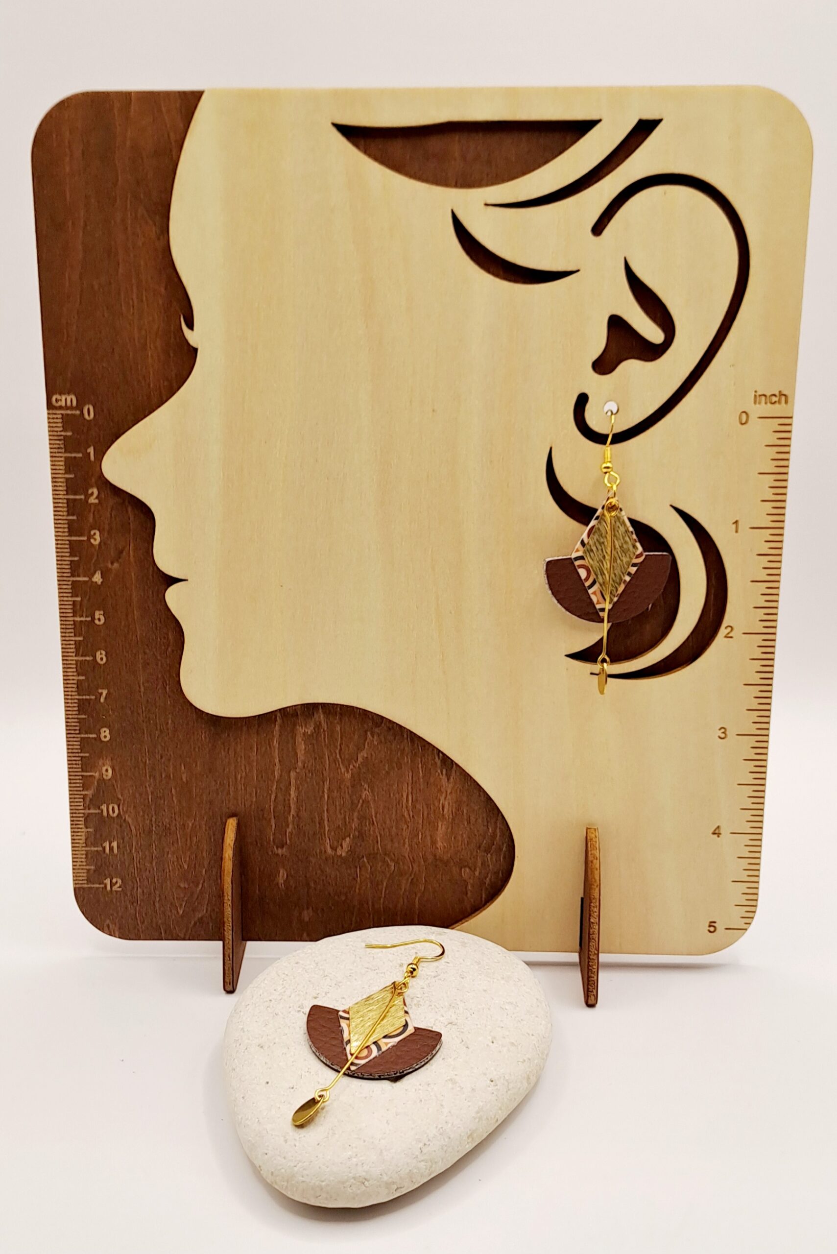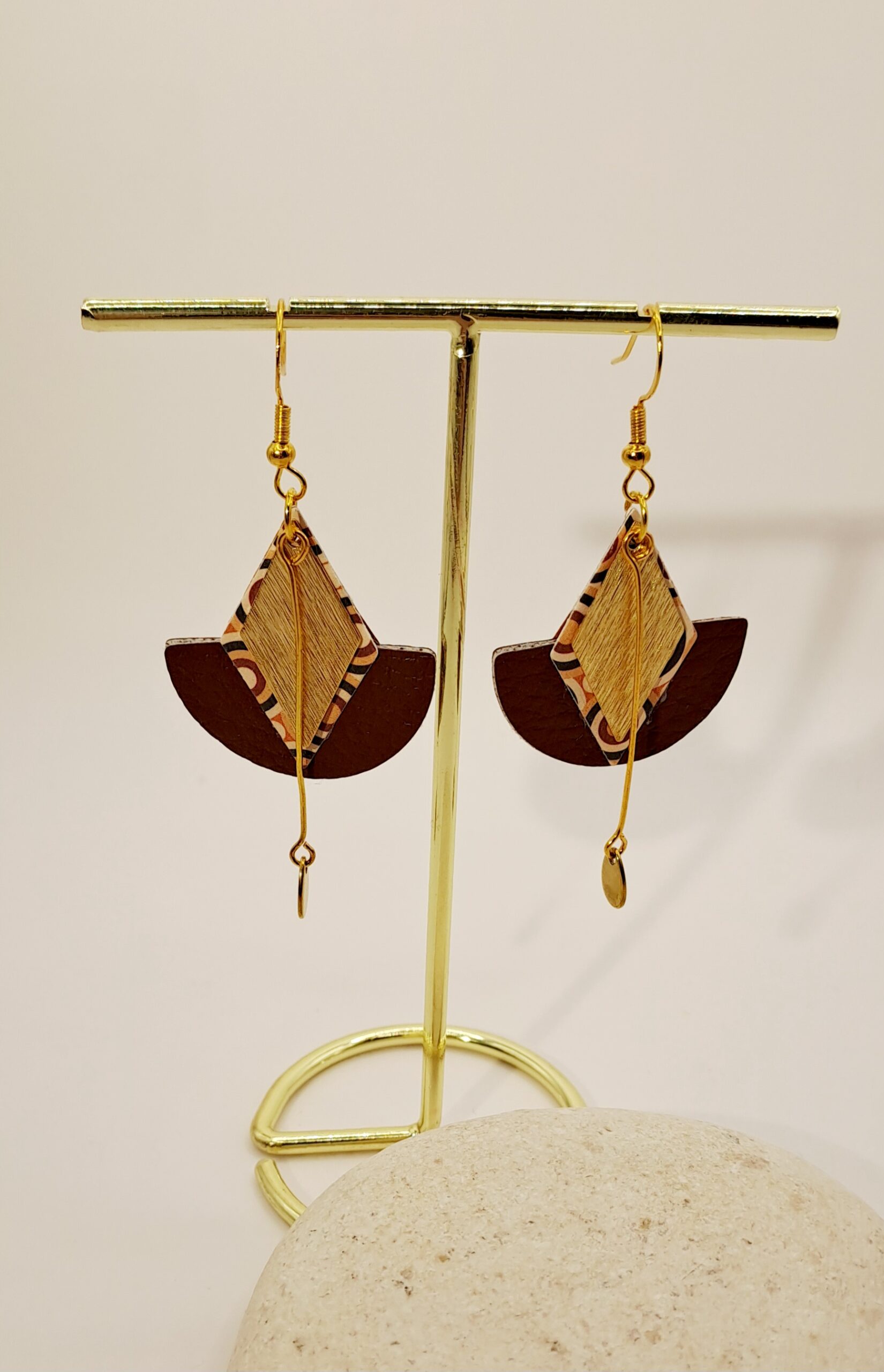 Boucles d’oreilles Simli-cuir marron et doré / charme d’oré / crochet or